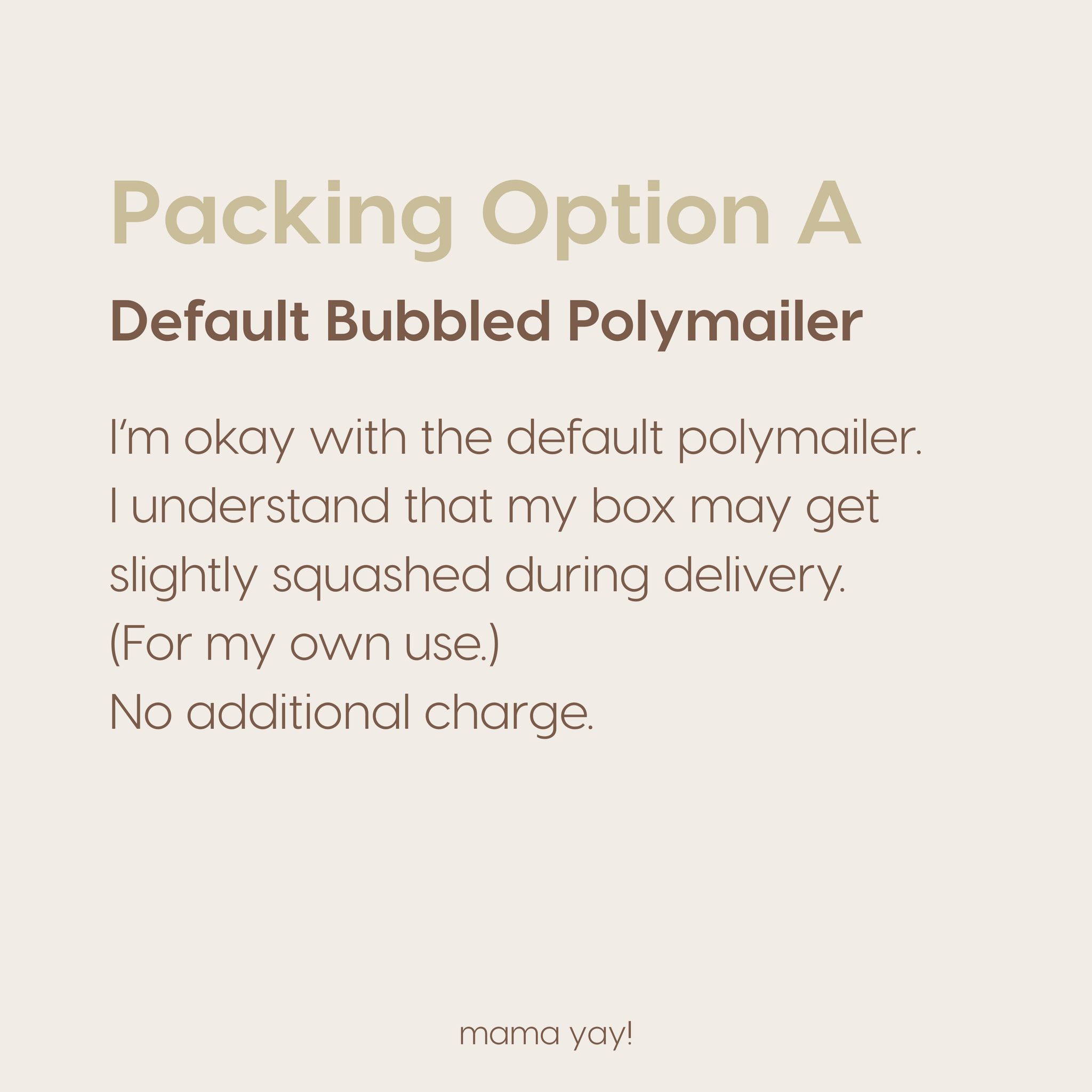 Your order will be shipped in our standard bubbled polymailer.