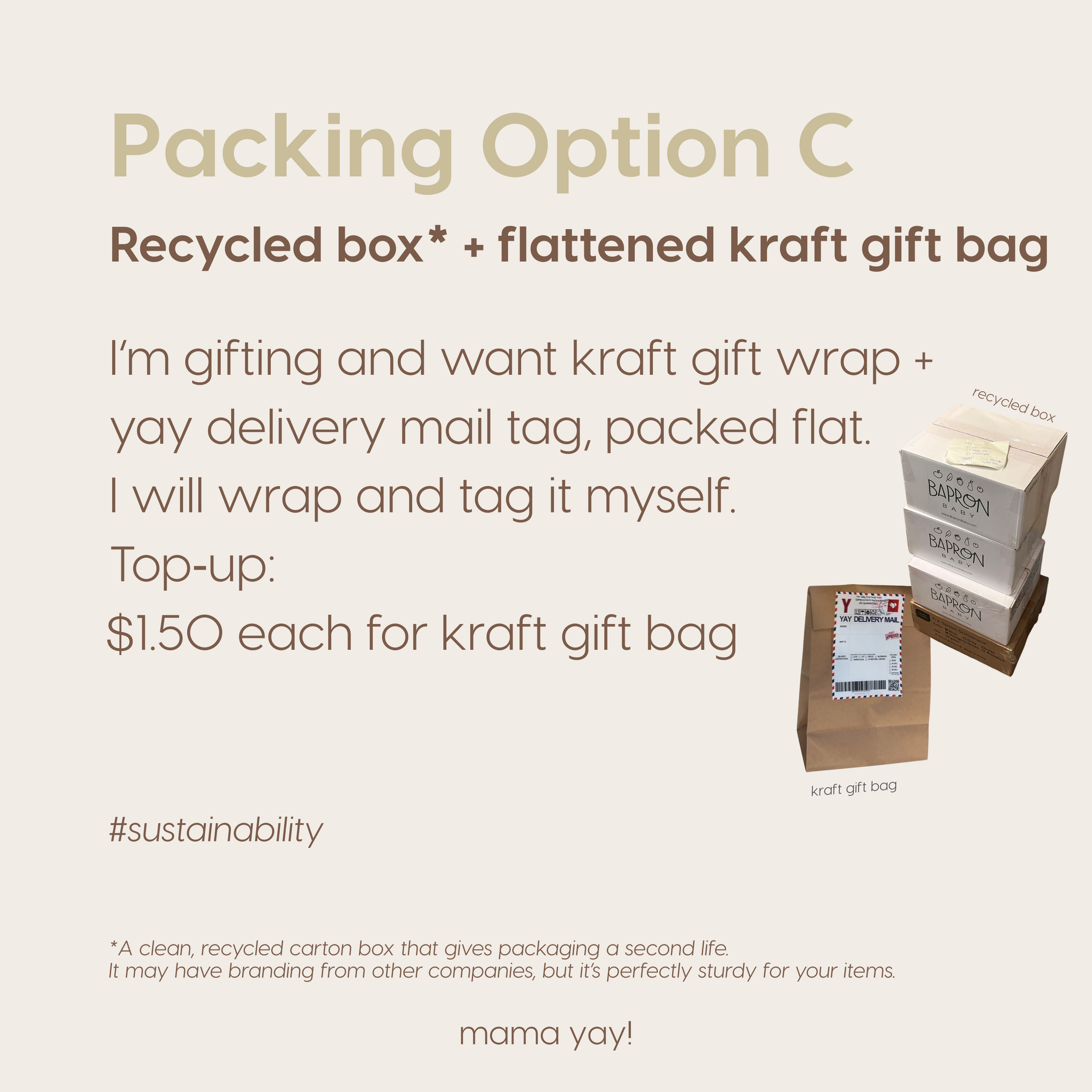 Your order will include a kraft gift bag and Yay Delivery sticker gift tag, packed flat so you can wrap and write the message yourself.